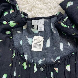 Brand new. In perfect condition. Short balloon sleeves. Gathered bodice. Shell buttons on front. Can be easily dressed up or down.