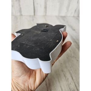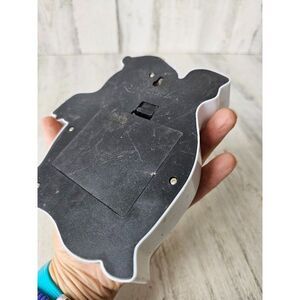 l push button stays lit up or can push to turn off, battery operated, has some moderate scratches damage wear, still working as it should, is about 6 in by 7-in by 2.5 in