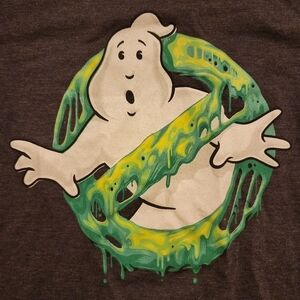 Ghostbusters Boys Large T-shirt Grey Slime 80's Retro Graphic Halloween Tee EUC