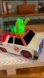 Ghostbusters Ecto-1 car featuring a green Slimer figure. Red and white car with black details & interactive sound, lights & Ghostbusters theme song.