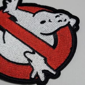 A cute Ghostbusters iron on patch in good condition. 3 color embroidery on black felt iron on backing , die cut. Measurements provided in photos.