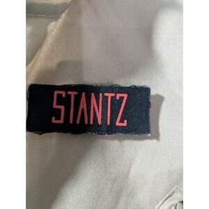 Tan one-piece Ghostbusters uniform with authentic embroidered "STANTZ" name patch on the chest and printed Ghostbusters "No-Ghost" logo on the sleeve. Zip-front closure, lightweight woven poly fabric, and classic movie-style detailing. Perfect for Halloween, cosplay, theme parties, or collectors of Ghostbusters memorabilia.