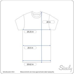 This Ghostbusters Men's Graphic Tee in size L is a stylish and comfortable short sleeve shirt in gray. Featuring a classic crew neck and regular fit, this shirt is perfect for all seasons. The graphic print of a ghost adds a fun and nostalgic touch, making it a great choice for fans of the iconic movie franchise. Made from a blend of polyester, rayon, and cotton, this shirt is a must-have for any Ghostbusters enthusiast looking to add a unique and retro piece to their wardrobe. In good condition with minimal signs of wear and a very small bleach spot.