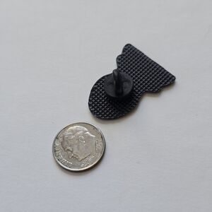 Stylish black and white scream ghostface pin. Perfect for adding a spooky touch to your outfit.