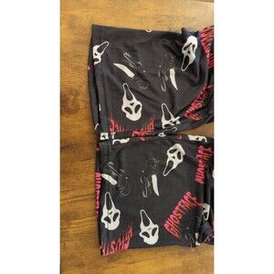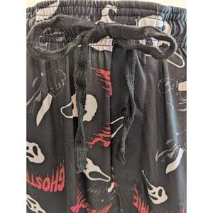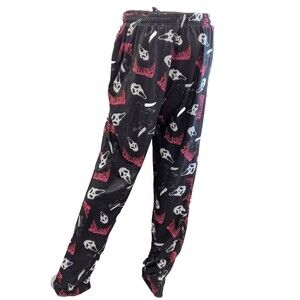 These officially licensed Bioworld pajama pants feature the iconic Ghostface mask and Ghostface text in bold red across a black background. Designed for comfort, they have a soft poly-spandex stretch blend, an elastic waistband with adjustable drawstring, button fly, and side pockets. Perfect for horror marathons, casual wear, or as a gift for *Scream* collectors.