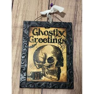 Ghostly Greetings Hanging Halloween sign decor 9x7