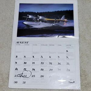 This Ghosts 1992 A Time Remembered Photo Calendar is a must-have for aviation enthusiasts. Featuring military airplanes, this 20" x 14" calendar is a perfect addition to any collection. Made in the United States, this calendar is a high-quality product that will last for years to come. With its unique design and high-quality printing, this calendar is sure to impress. The calendar features 12 months of beautiful photos of military airplanes, each with a different design and history. Whether you are a collector or just a fan of aviation, this calendar is a great way to remember the importance of military aircraft. See photos for complete vintage condition and description. Front cover has 4" tear, as pictured. August calendar has writing, as pictured. Other bends and folds due to age. Beautiful photos.