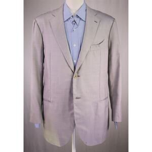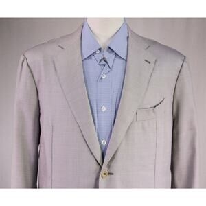 Gi Capri Napoli Gray/Pearl Woven Silk-Wool 2-Btn Handmade Sportcoat Blazer 44R
