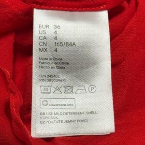 GiAMBATTiSTA VALLi x H&M Red Silk Chiffon Blouse Sheer Cascade Ruffle Long Sleeve. Size 4.