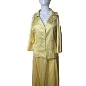 GiGi Clark SILK Vintage Button down top and maxi skirt set yellow size 3