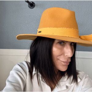 This Rancher Hat looks good on everyone! This hat with a teardrop shaped crown is paired with a stiff, medium upturned brim that makes this felt rancher hat universally flattering. The approachability + versatility of the hat is a must-have staple for any wardrobe + can be styled up or down for every occasion. It is adjustable. You can make smaller.