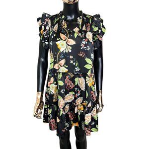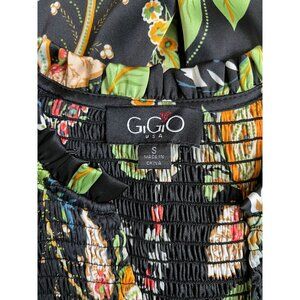 GiGiO USA Black Floral Ruffle Mini Dress Tiered Babydoll Sateen Fabric Small