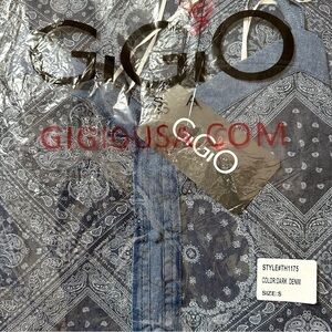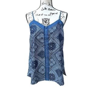GiGiO USA Pattern Print Chambray Cotton Covered Button Tank S