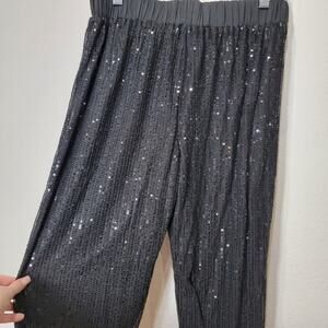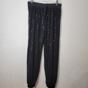 GiGio black sequin joggers size Medium. Sequins all over in lines down the pants. Drawstring closure with banded ankles. Lined with soft polyester.