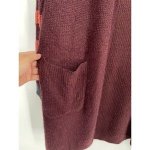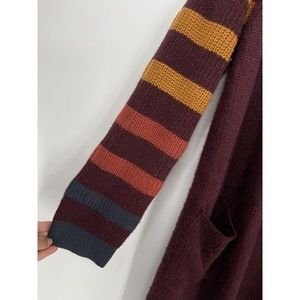 GiGio Burgundy Striped Sleeve Open Front Long Cardigan Sweater Size M Collegiate