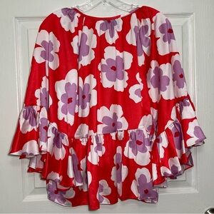 GiGio Vibrant Red Bell Sleeve Floral Blouse | size Small
