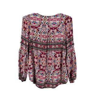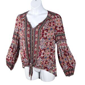 boho blouse floral print top tie front blouse balloon sleeve shirt women's rayon top GiGio clothing red floral blouse medium women's top bohemian fashion paisley blouse lightweight blouse boho chic top casual women's blouse