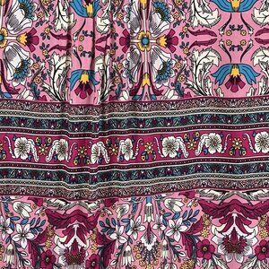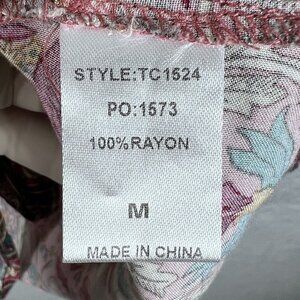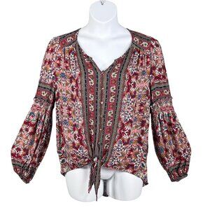 GiGio Womens Size Medium Boho Floral Print Blouse Tie Up Waist Smocked Cuff Balloon Sleeves Oversized Bohemian Artsy Hippie Top