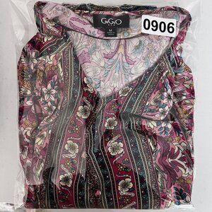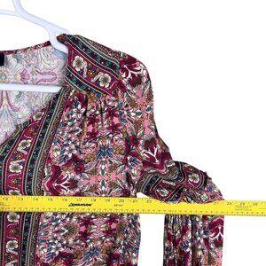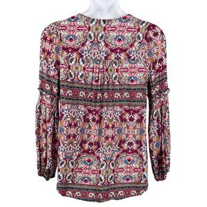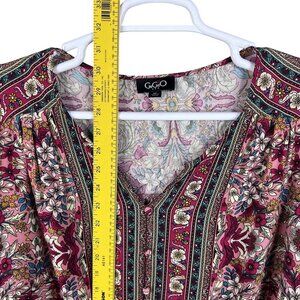 GiGio Womens M Boho Floral Blouse Smocked Cuff Balloon Sleeves Hippie Artsy Top