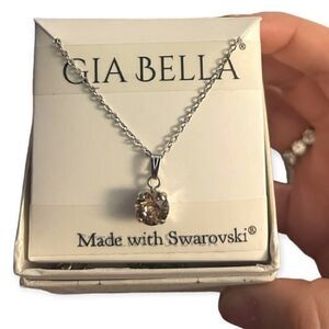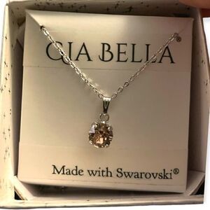Gia Bella Sterling Silver Round Light Pink Swarovski Crystal Necklace