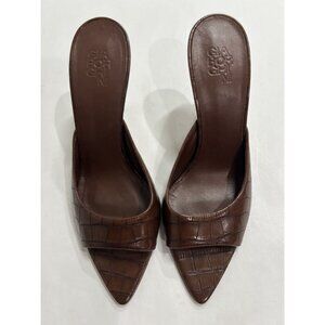 Description from retailer: Made in Italy. Slip-on styling. Leather footbed and lining. Pointed open toe. Stiletto heel. Approx 85mm/ 3.35 inch heel. Our Style No. GGHF-WZ153. Manufacturer Style No. PE04-SLCR-4545.
