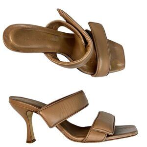Gia Borghini Pernille Teisbaek Two-Band Puffy Slide Sandals Tan Leather 39.5
