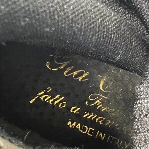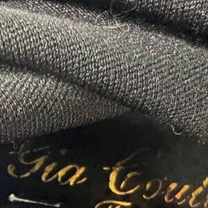 This is a pair of Gia Couture 'Boom' faux suede black velvet like fabric over the knee boots with a red patent leather kitten heel, EU size 38, US women's size 8. The fabric is stretchy and there is a rubberized band at the top to keep the boots up. Excellent, like new condition. Retail $650 USD. Leather soles. Made in Italy. Measurements;