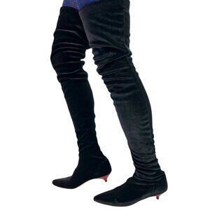 Gia Couture Boom Black Velvet Over The Knee OTK Boots Red Kitten Heels EU 38, 8