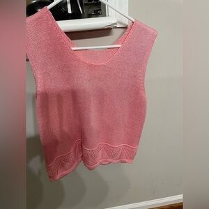 Gia Italia tow piece set , tang top and Cardigan in pink color, Hand loomed . Made of Cotton and Rayon it has small shoulder pads pit to pit 21” length 21.5”sleeve 18” the tank top pit to pit 17.5 length 18.5” Pre owned good condition only at the back of tang top a spot is darker pink size M women.