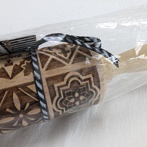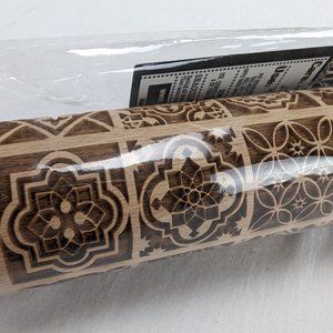 Gia Roma Beech Wood Rolling Pin & Cookie Cutter Boho Squares Handmade New