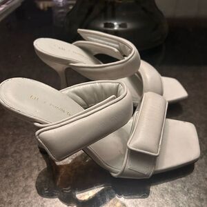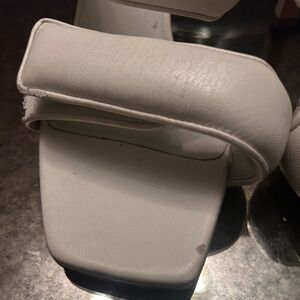 Size 36. A small scuff near the toe and on the strap. Indentations on the heels. Still in good shape.