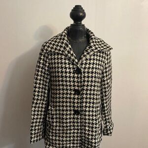 Giacca Black Whtie Tweed Coat, size small (39% wool, 29% acrylic, 26% Rayon, 3% other)