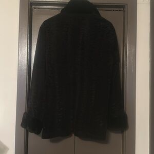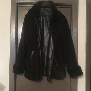 Giacca Gallery very nice Faux Mink/ Faux Leather Reversible Coat, medium. Textured faux mink with pockets and zipper front. Comfortable generous fit