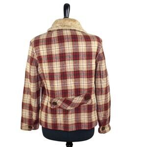 Giacca Plaid Wool Blend Jacket Faux Fur Collar Chore Coat Barn Cabin L