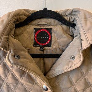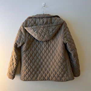 Giacca Tan Quilted Puffer Long Sleeve Hooded Button Up Jacket Coat