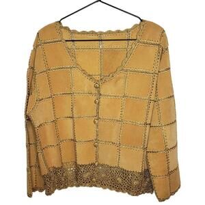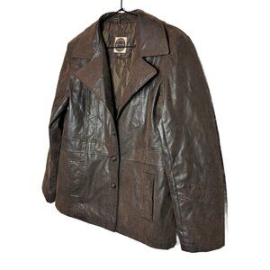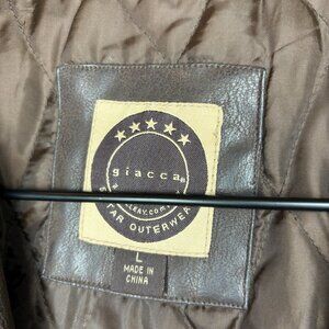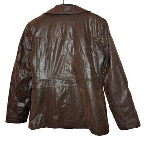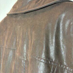 Giacca Womens Sz L Brown Distressed Faux Leather Button Front Jacket(1500)