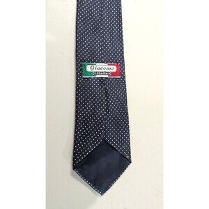 The Giacomo Men's Milano Navy Blue Polka Dot Silk Tie is a stylish and luxurious men's accessory from the designer brand, Giacomo De Senese. Made from high-quality silk, this tie features a classic polka dot pattern in a sophisticated navy blue color. The adjustable design and 3" width make it a versatile and fashionable addition to any man's formal wardrobe. Imported from Italy, this designer tie exudes elegance and refinement for any special occasion.