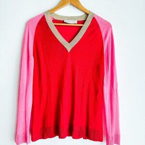 Giada Benincasa Cashmere Silk Red Pink V Neck Knit Top M
