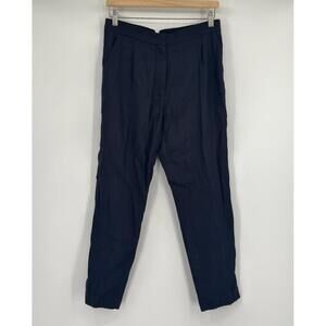 Giada Forte Womens Black Linen Blend Pleated Crop Ankle Pants Sz 0