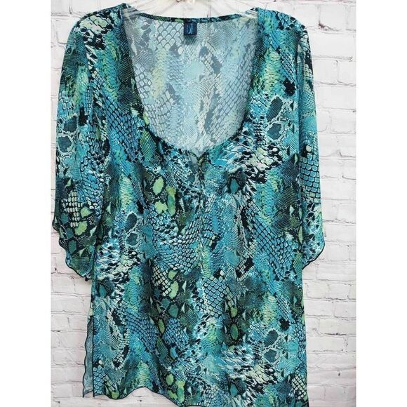 Giadamarina Womens Swim Cover Up Blue Black Snake Print Tie Keyhole Neck OS