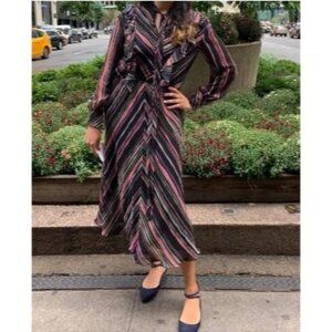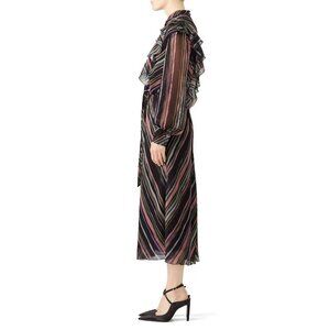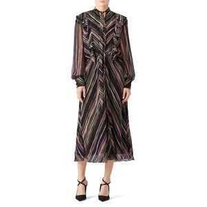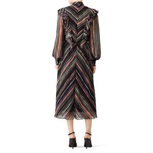 Giamba Black Stripe Ruffle Blouson Midi Dress $1335