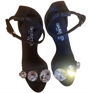 Giambattista Valli Jewel Satin Ankle Sandals Black 36/6