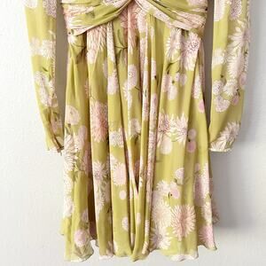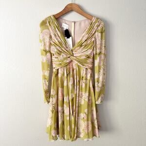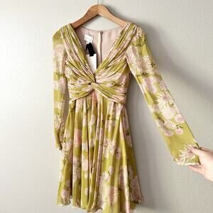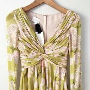 Giambattista Valli Paris Floral Silk Long Sleeve Twist Mini Dress IT Size 42 NEW