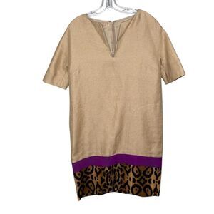 Giambattista Valli Paris size 40/XS spring Summer 2012 made in Italy color block print dress GUC slight wear but still in very good shape. Smoke free dog friendly home v neck animal print tan purple short sleeve zipper on back 19” bust and 36” length bin 63