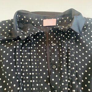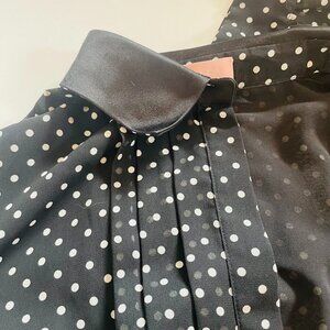 Giambattista Valli Polka Dot Shirt Dress Pleated Black White Pearl Maxi Silk