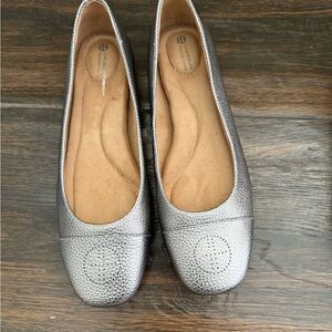 Elegant and versatile silver flats perfect for any occasion. Comfortable and stylish, these shoes are a must-have addition to your wardrobe.