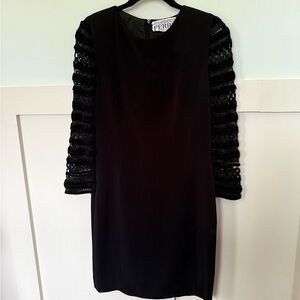 Gianfranco Ferré Black Cocktail Dress Sheer Crochet Sleeves – Vintage Designer