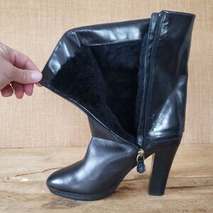 Gianfranco Ferré Black Leather High Heel Fur Lined Fold Over Moto Boots EU 37