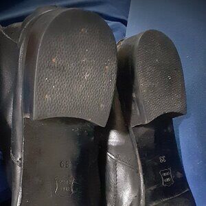 Gorgeous, designer Gianfranco Ferré flat boots from Italy. Genuine leather: soft, shiny and supple. Studded on along the instep with artistic design detail. A little rock-and-roll, a little glam, a lot cool. 38.5 cm from top to heel. I love these boots so much, but they are just too small for my size 9+ feet.