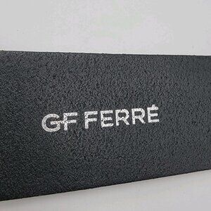 Gianfranco Ferre GF Logo Belt Italy Silver Buckle Black Faux Leather Flaw